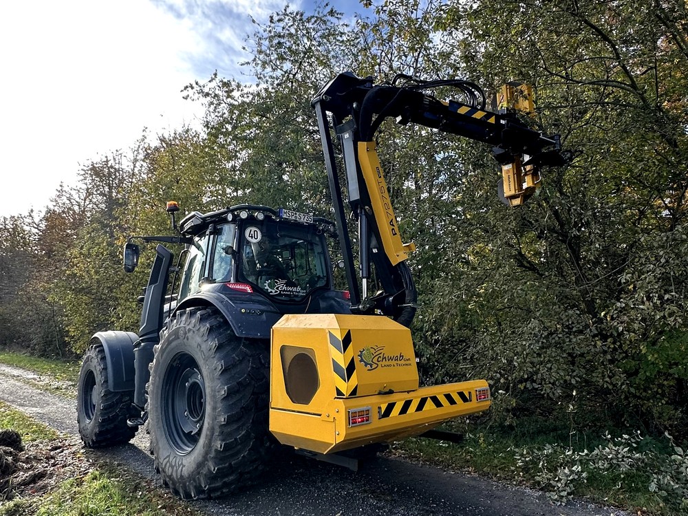 Unsere Kreissäge am Teleskopausleger schneidet hierbei sogar Äste bis zu einer Stärke von 14cm mühelos und arbeitet dabei schnell, effizient und sicher.